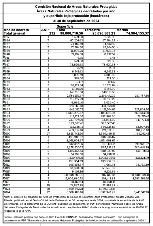 A la fecha, el gobierno federal ha decretado 232 Áreas Naturales Protegidas, las cuales cubren 98 millones 719 mil hectáreas.