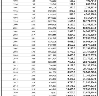 De acuerdo con la información más actualizada sobre el número de UMAs existentes en el país y la superficie que protegen, procedente del Sistema Nacional de Información Ambiental y de Recursos Naturales de Semarnat, presentamos el suguiente cuadro con datos desde 1992 a 2024. Para el año 2025, según Informe de Primer Año 2024-2025 de la Secretaría de Medio Ambiente y Recursos Naturales, se registran los siguientes datos: 39.59 millones de hectáreas en 14,944 UMA al 2025.